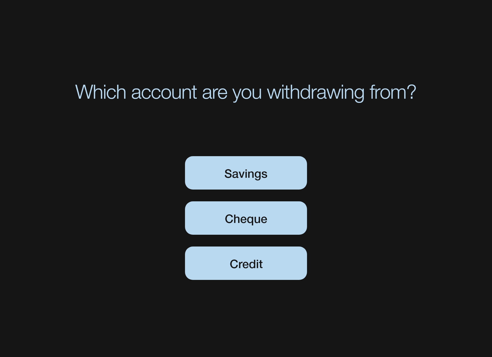 3. When you are asked Which account you are withdrawing from, select Visa Savings.