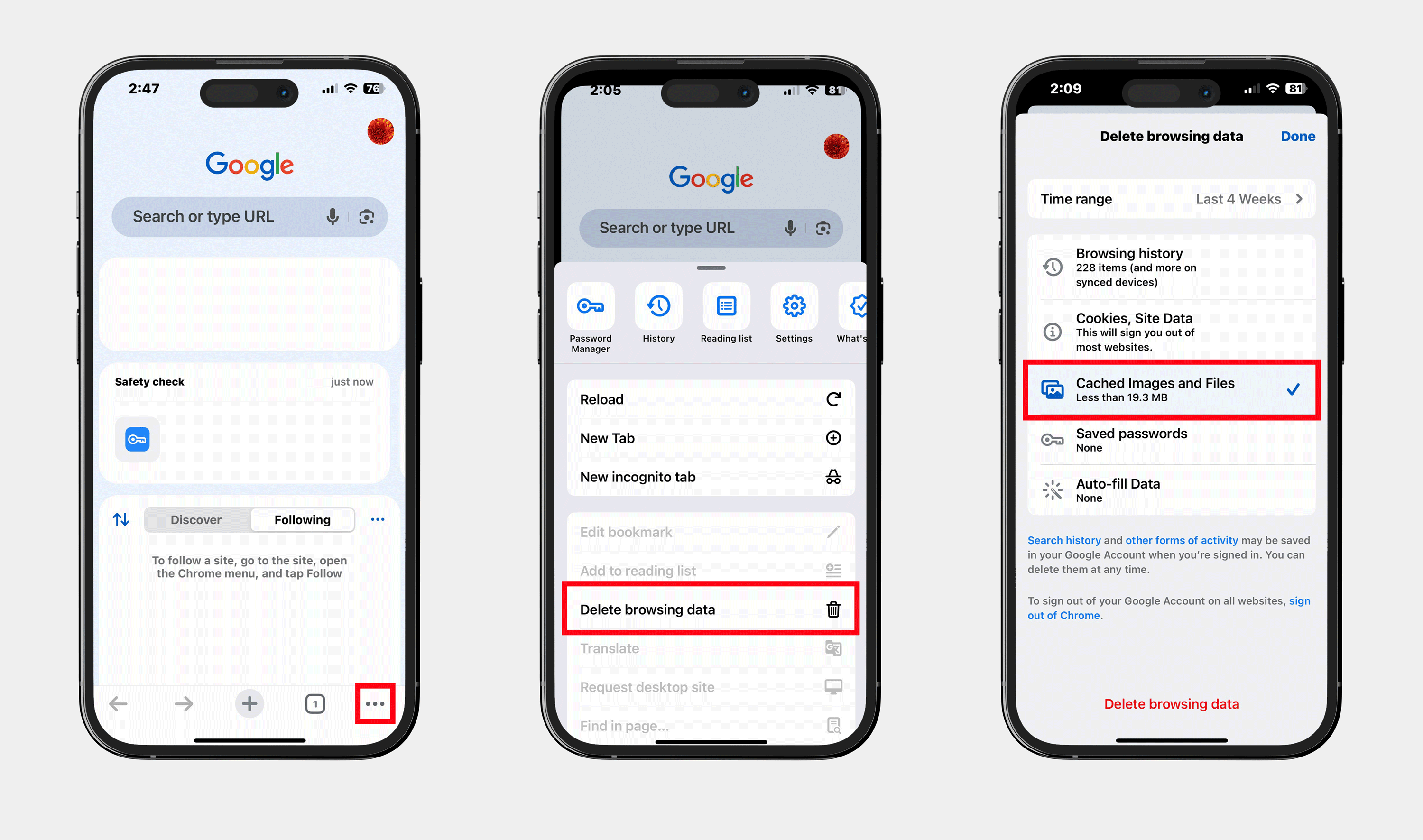 4. Ensure Cached Images and Files are checked.